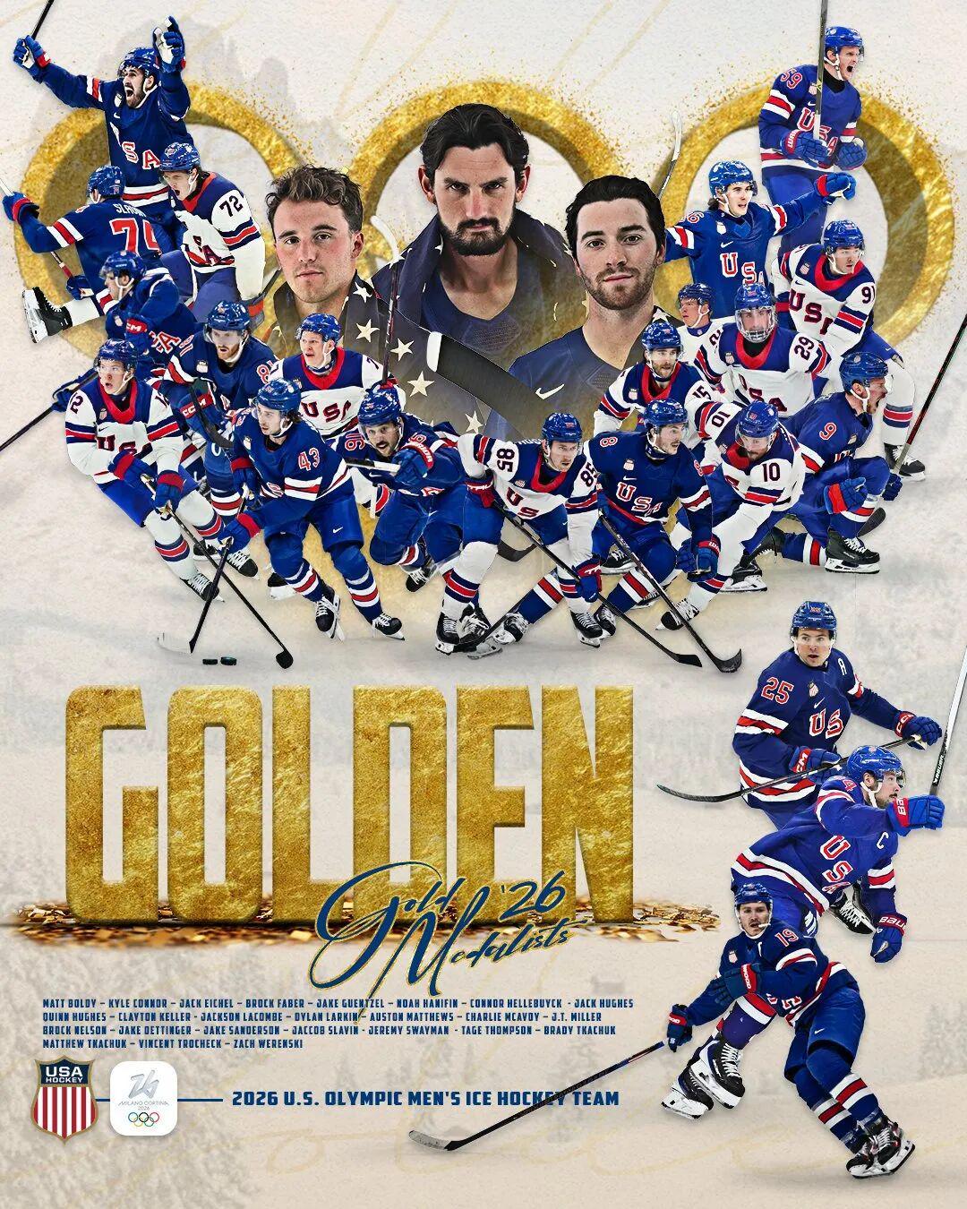 加时赛的金球制,是冰球运动最残酷也最浪漫的规则。一球定胜负,一球定生死。当杰克·休斯打进那粒金球的那一瞬间,不只是比赛结束了,一个漫长的时代也结束了。这是美国男冰历史上的第三枚奥运金牌。他们终于在金牌的数量上追近了那个老对手一步,也终于能在NHL球星全面回归的第一届奥运会上,向世界宣告:在这项属于北美的运动中,南边的那个邻居,同样可以站在最高处。